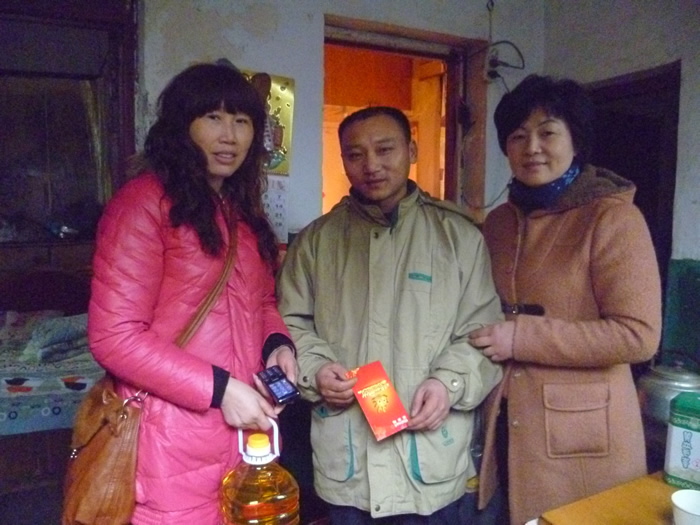 當來(lái)到困難員工盛福銀家里時(shí),看到屋內昏暗的燈光下,破舊的水壺燒著(zhù)熱水,幾只水杯是為公司慰問(wèn)的領(lǐng)導準備的。盛福銀是我們公司的優(yōu)秀員工,工作認真負責,不出差錯。他是管理處主任看著(zhù)眼里的好幫手。他用微薄的工資供養著(zhù)老母親。他表示對于金太陽(yáng)的這個(gè)大家庭給予他的溫暖,他無(wú)以為報,唯有好好工作,為金太陽(yáng)出自己的一份力量。