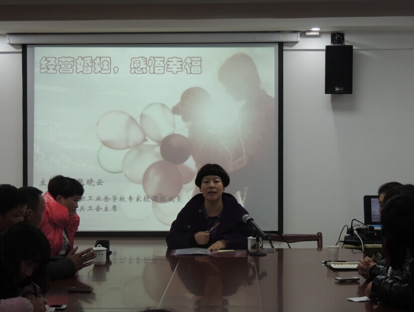 2015年1月14日晚,馬鞍山市花山區直機關(guān)工會(huì )主席、馬鞍山市女職工業(yè)余學(xué)校專(zhuān)家授課團成員張曉云老師來(lái)到我公司大講堂,為包括董事長(cháng)在內的公司管理人員開(kāi)展了一場(chǎng)別開(kāi)生面的講座。此次講課的主題是《經(jīng)營(yíng)婚姻,感悟幸?!?。